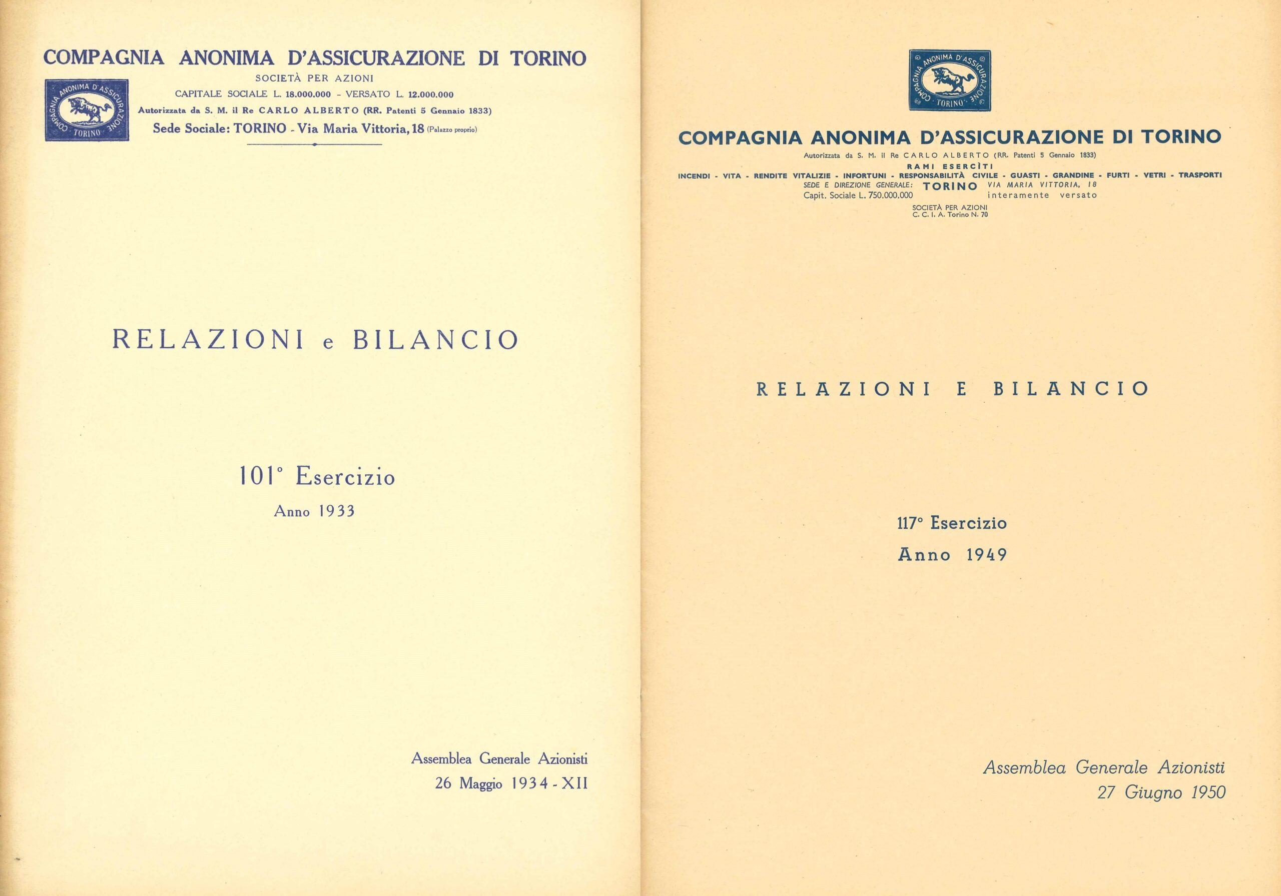 La serie dei bilanci a stampa della Toro Assicurazioni inizia con l’opuscolo relativo agli esercizi 1849 e 1850, il 17° ed il 18° esercizio dalla fondazione, nel 1833, della Compagnia anonima d'assicurazione a premio fisso contro i danni degl'incendj stabilita in Torino. Con questa banca dati si presentano agli studiosi ed ai ricercatori cento anni di rendiconti, relazioni e bilanci, in versione digitale, fino al 1949. Preziosi opuscoli, fonti di innumerevoli informazioni utili tanto per ricostruire la vicenda societaria della Toro, quanto per indagare l’effetto dei grandi eventi nazionali ed internazionali di un secolo di storia (il Risorgimento, la Grande Guerra, il fascismo, la Crisi del ’29, la seconda guerra mondiale, il nuovo ordine internazionale e l’Italia democratica) anche sulla compagnia di assicurazioni.