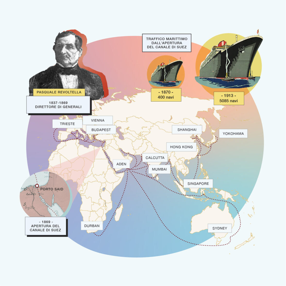 Dopo Suez, mentre la classe media di Trieste cresceva e il cosmopolitismo cittadino sembrava garantire un durevole successo economico, Generali espanse i suoi mercati nel globo. La collaborazione con il Lloyd austriaco continuò: negli anni Ottanta, i suoi agenti furono promotori di polizze Generali nei porti lungo le rotte solcate dalla società di navigazione. Così, la competenza di Generali fu condivisa con il resto del mondo, facilitando le dinamiche di internazionalizzazione nel settore assicurativo.