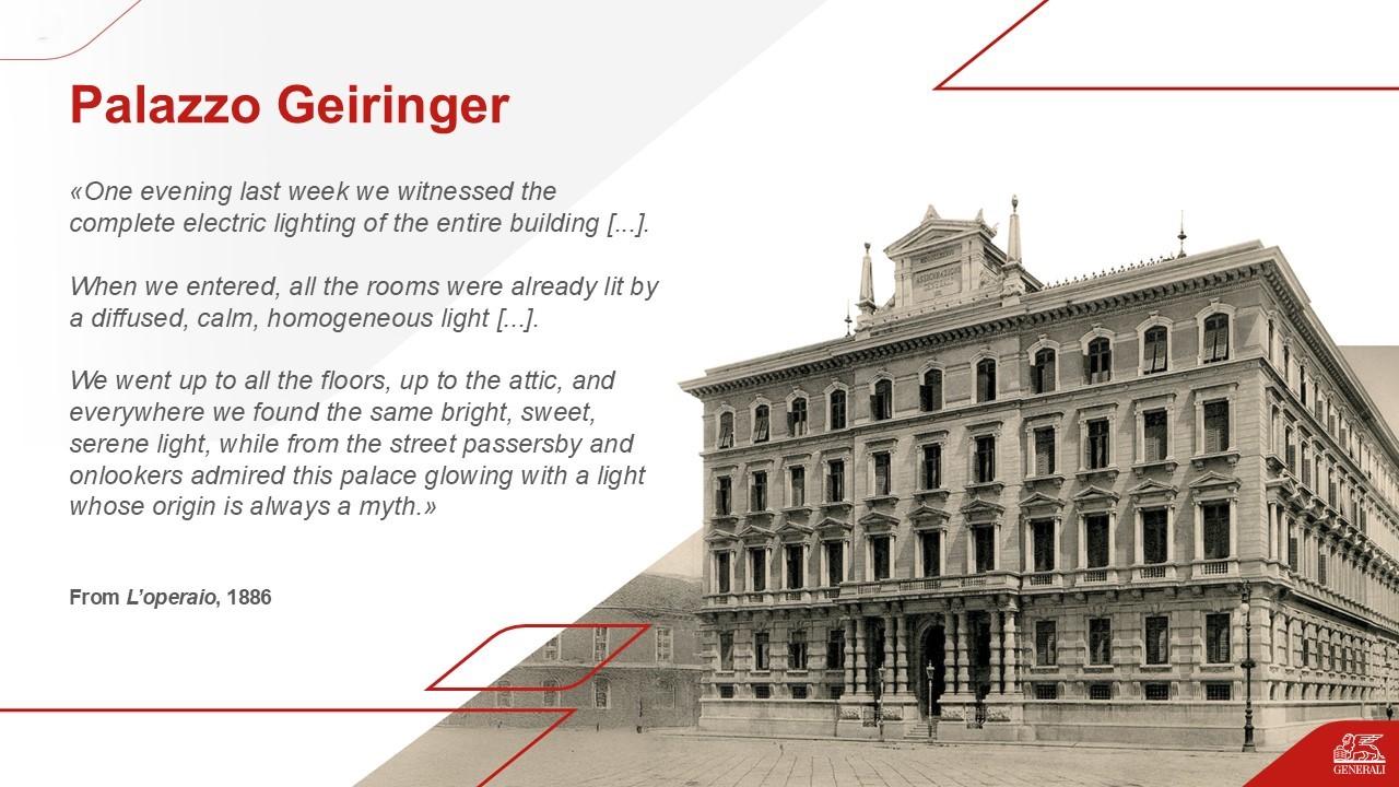 All three buildings were conceived with a clear vision of change—each representing a distinct cultural and architectural innovation, and a drive toward new worlds. Palazzo Carciotti looked to a dynamic, open mercantile society; Palazzo Geiringer embraced the style of contemporary Italian palaces and the advent of electric lighting; and Palazzo Berlam drew inspiration from skyscrapers and American urban life. Today, we perceive them as historical landmarks, yet they were once bold statements of modernity.