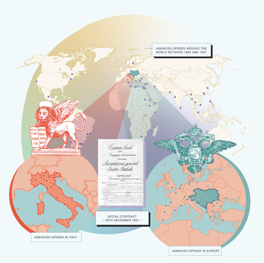 A few years after its foundation, agencies developed throughout the Habsburg Empire, in the Italian peninsula, in the German states, and in the main European ports. The experience gained on an international level and the stability now established created a new impetus from the 1870s until the end of the nineteenth century, particularly towards the Anglo-Saxon markets.
