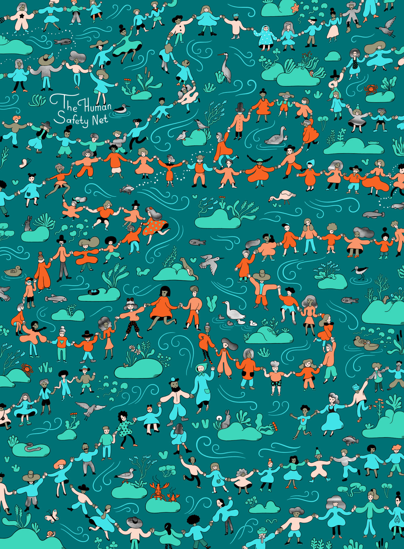 Alëna Skarina is a Siberian artist working in illustration and art in Toronto, Canada. Her style stands out for its hyper-precise strokes and hand-made typography revealing a unique graphic sensibility. The organic contours of Venice and social themes play out in her work with the naive touch of her illustrations. The artwork is about our contribution to the community, The Human Safety Net, a global network of people helping people that found in Venice its home. That is why it focuses on people, as individuals and as a community, in order to create points of encounter, collaboration, discovery and union. And that is how the artist draws dreamy lagoons in which humanity unites the islands, forging a link between environment and human being. Her socially engaged work has earned her major international awards and commissions for prestigious organisations including: Save The Children Foundation, the Alzheimer Society, The New York Times, Die Zeit, Adobe, L’Internazionale and Uncle Ben’s.