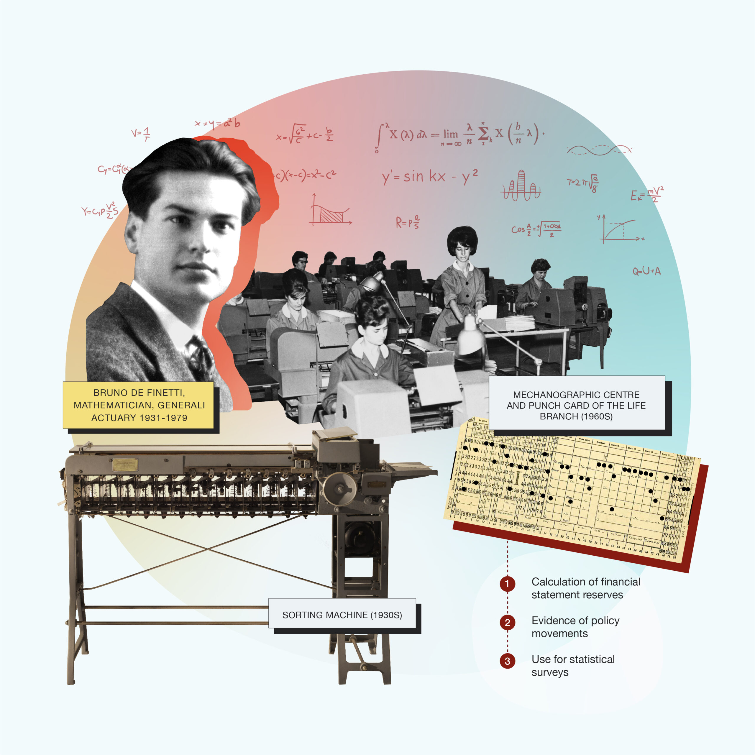 For more information on Bruno de Finetti: M. MARIZZA, Bruno de Finetti and Assicurazioni Generali, in Generali in History. Tales from the Archive. Twentieth Century, Venice, Marsilio, 2016, pp. 170-175; A. MILLO, Bruno de Finetti, ibid., pp. 176-181.