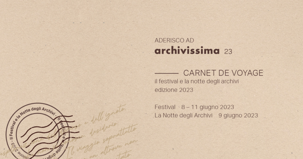 L’Archivio Storico Generali, assieme a più di 400 archivi italiani ed esteri, sarà tra i protagonisti di Archivissima (il primo festival italiano dedicato alla promozione e valorizzazione degli archivi storici), quest’anno dedicato al tema del viaggio (carnet de voyage), e in particolare parteciperà con un’iniziativa speciale la sera del 9 giugno, per celebrare la Notte degli Archivi e la concomitante Giornata Internazionale degli Archivi.